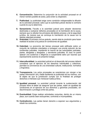 Este documento presenta el Código Procesal Civil de Bolivia. Establece los principios fundamentales del proceso civil como la oralidad, legalidad, dispositivo, dirección, inmediación, concentración, publicidad, saneamiento, gratuidad, celeridad, interculturalidad, transparencia, igualdad procesal y otros. También define las funciones y competencias de las autoridades judiciales, así como las reglas y procedimientos para resolver conflictos de competencia entre juzgados.