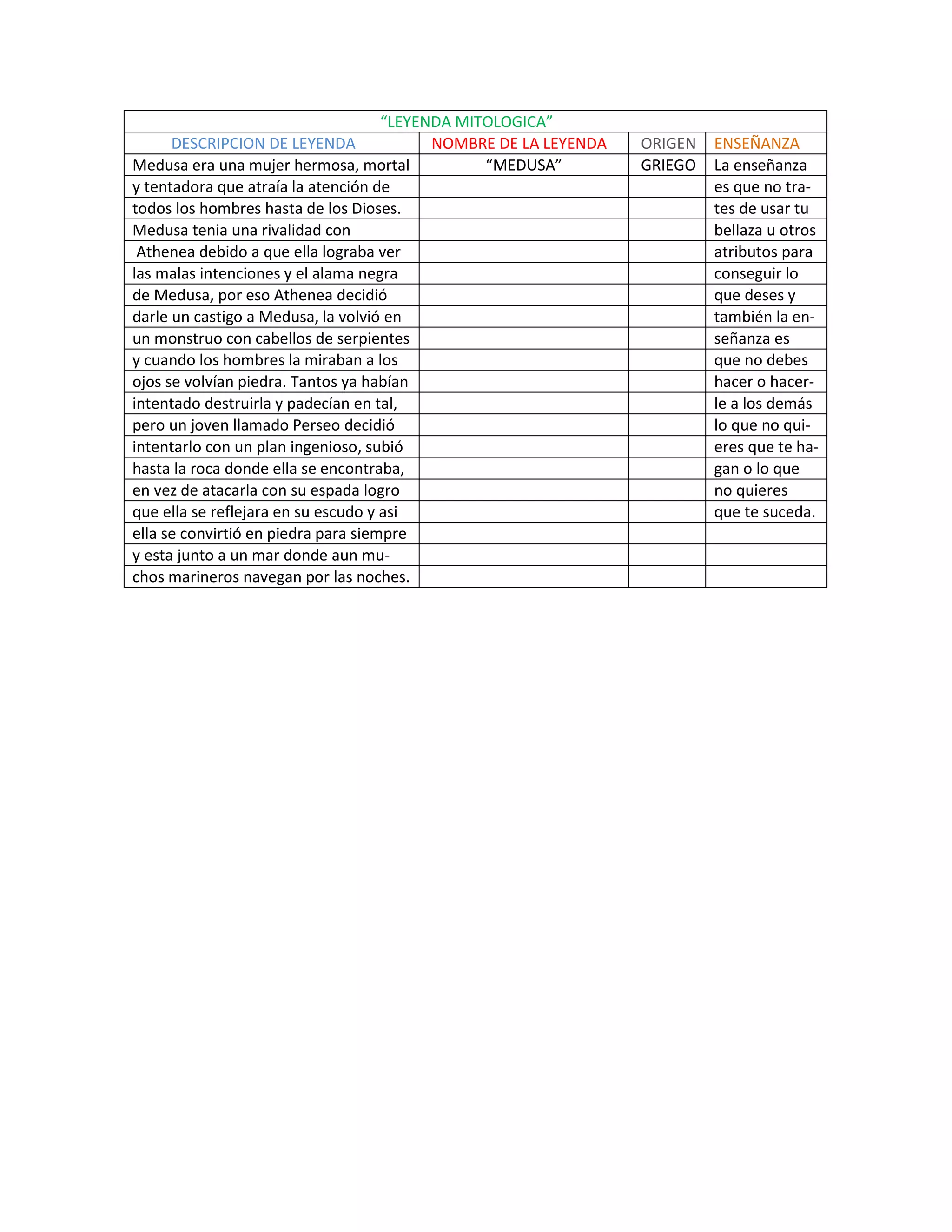 La leyenda de Medusa cuenta que era una mujer hermosa pero tentadora que atraía la atención de todos los hombres, incluso los dioses. Esto provocó la rivalidad de la diosa Atenea, quien la transformó en un monstruo con serpientes en lugar de cabello para castigarla. Cualquiera que la miraba directamente se convertía en piedra. Finalmente, el héroe Perseo logró derrotarla reflejando su imagen en un escudo para evitar su mirada y poder convertirla en piedra de una vez por todas