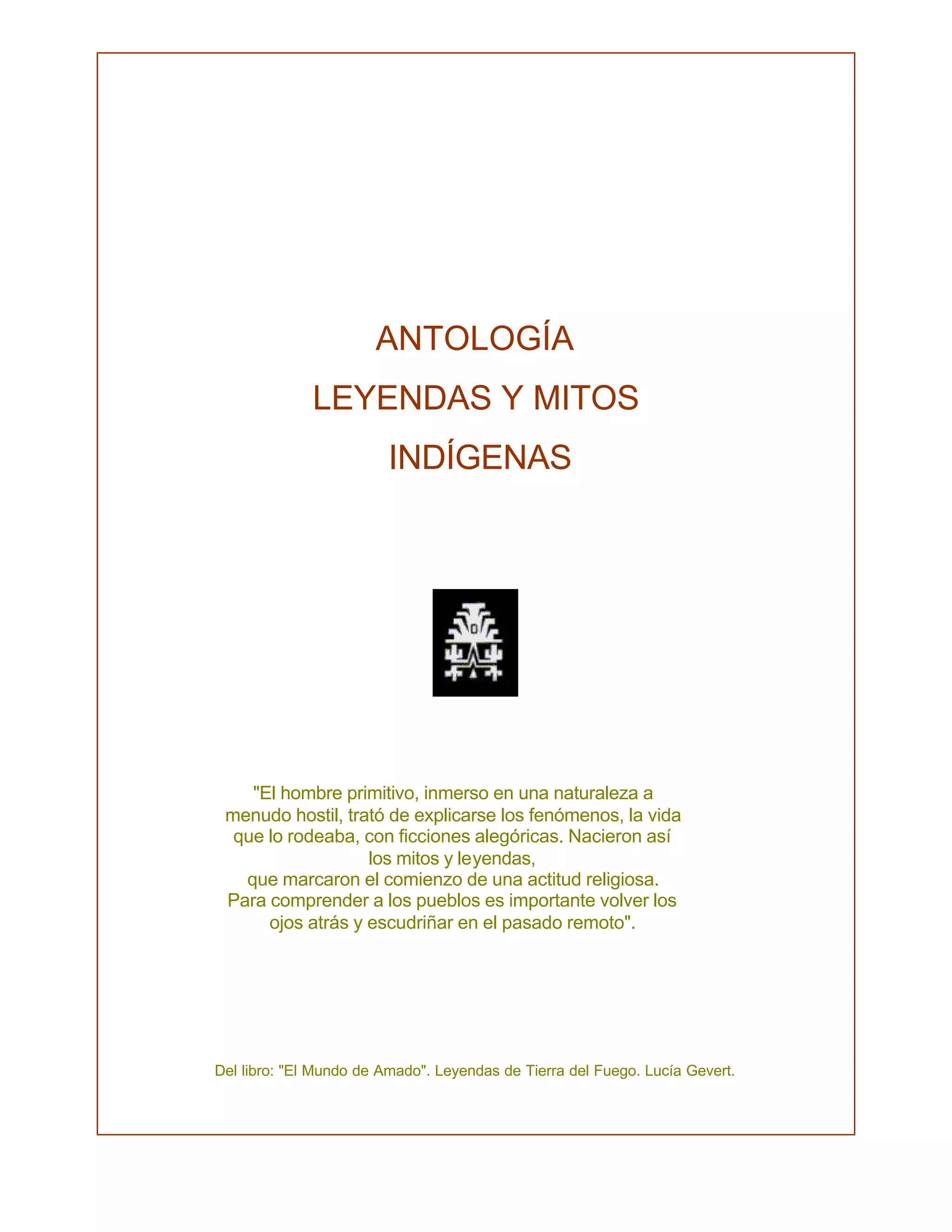 Este documento presenta varias leyendas y mitos indígenas de diferentes pueblos originarios. Incluye dos leyendas mapuches sobre los orígenes del hombre y la mujer, Domo y Lituche, y una historia sobre la montaña Tronador. También presenta dos leyendas chilotas, una sobre las diosas Tentén-Vilu y Coicoy-Vilu que crearon el archipiélago, y otra sobre el Millalobo. Por último, incluye brevemente una leyenda aymara sobre el tatu y su capa de fi