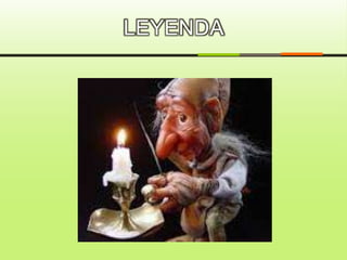 Este documento describe las características de las leyendas y los mitos. Explica que las leyendas son narraciones que pretenden explicar fenómenos naturales con historias sobrenaturales y que se transmiten oralmente de generación en generación. También describe la estructura típica de una leyenda con un inicio, desarrollo y desenlace, así como los elementos comunes como el narrador, personajes, acciones y espacio. Finalmente, contrasta las leyendas con los mitos, señalando que los mitos explican el mundo y su funcionamiento