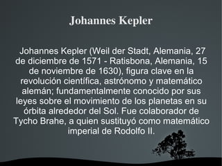Las leyes de Kepler describen el movimiento de los planetas alrededor del Sol. La primera ley establece que las órbitas planetarias son elípticas con el Sol en uno de los focos. La segunda ley indica que los planetas barren áreas iguales en tiempos iguales. Y la tercera ley expresa que el cuadrado del periodo orbital es proporcional al cubo del semieje mayor de la órbita. Newton formuló matemáticamente estas leyes y las explicó mediante su ley de la gravitación universal.