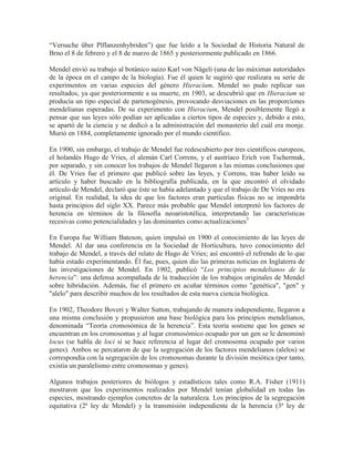 Las Leyes de Mendel establecen las reglas básicas de la herencia genética. Gregor Mendel descubrió estas leyes al cruzar distintas variedades de guisantes entre 1856 y 1863. Sus experimentos mostraron que los caracteres se heredan como unidades discretas (los genes) y se transmiten de una generación a la siguiente según patrones predecibles.