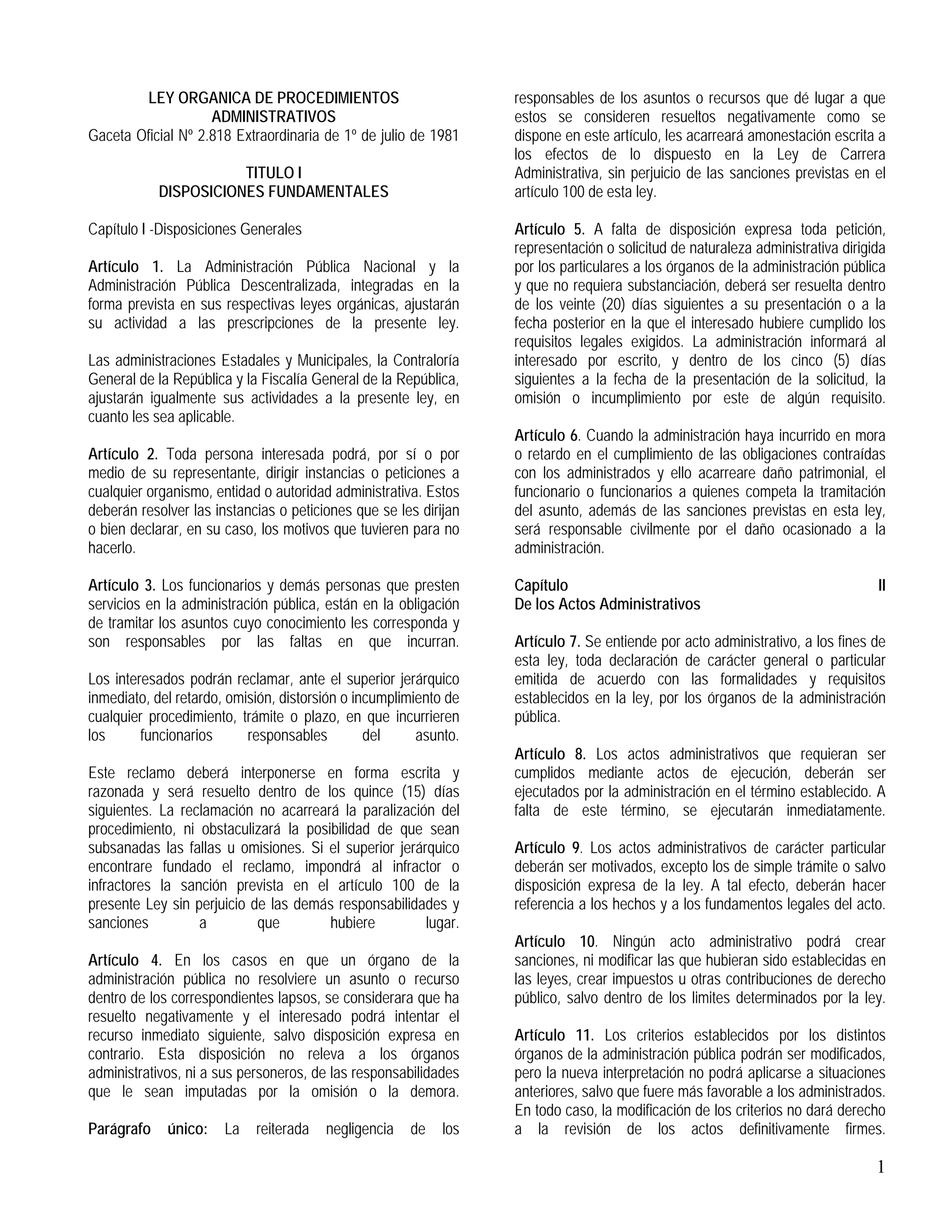 Este documento presenta los principales aspectos de la Ley Orgánica de Procedimientos Administrativos de Venezuela. Establece las normas generales que rigen la actividad administrativa y los procedimientos para la toma de decisiones. Incluye disposiciones sobre actos administrativos, derechos de los administrados, deberes de la administración pública y causales para la inhibición de los funcionarios en determinados asuntos. El objetivo final es garantizar la eficiencia, economía, celeridad e imparcialidad en la gestión pública.