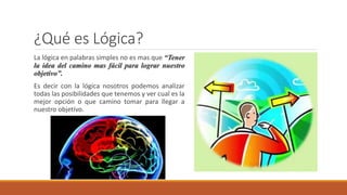 El documento proporciona una introducción a los conceptos básicos de la lógica de programación. Explica que la lógica se refiere a analizar las posibles soluciones para alcanzar un objetivo de la manera más eficiente. Un programa es un conjunto de instrucciones que logran un objetivo al ser ejecutadas. La programación implica crear una serie de pasos para resolver un problema usando un lenguaje de programación. Un programador escribe y mantiene el código de un programa.