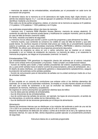 1) La lógica programable permite utilizar unidades electrónicas para el tratamiento de datos mediante programas cargados en la memoria en lugar de un esquema cableado. 2) Los autómatas programables son componentes básicos de equipos electrónicos de automatismo y aparecieron en 1969 para automatizar fábricas de forma adaptable a cambios. 3) Existen numerosos modelos de autómatas programables desde nanoautómatas para máquinas simples hasta autómatas multifunción para procesos complejos.