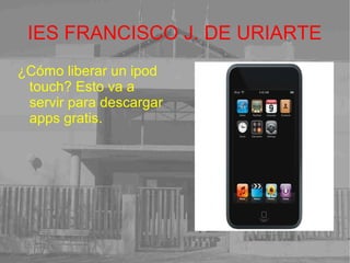 El documento describe los pasos para liberar un iPod touch y descargar aplicaciones gratuitas. Primero, se debe visitar la página jailbreakme.com y deslizar la barra para descargar el programa Cydia. Luego, se debe buscar e instalar la aplicación "installous" en Cydia, la cual funciona como una tienda de aplicaciones gratuitas similar a la App Store. Finalmente, el documento provee instrucciones sobre cómo descargar e instalar aplicaciones gratuitas desde installous.