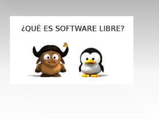 El documento habla sobre el software libre y sus aplicaciones en los centros escolares. Explica que el software libre son programas que pueden ser utilizados, copiados, modificados y redistribuidos libremente por sus usuarios. También describe las cuatro libertades que tienen los usuarios de software libre: usar el programa para cualquier propósito, estudiar y modificar el código, distribuir copias, e implementar mejoras que se compartan con la comunidad. Finalmente, menciona algunos ejemplos de software libre que se pueden usar en educación, como Clic, App