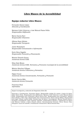 1. El documento presenta un Libro Blanco sobre el Plan de Accesibilidad ACCEPLAN para España, el cual analiza las posibilidades y enfoques de actuación necesarios para abordar los problemas relacionados con la accesibilidad.