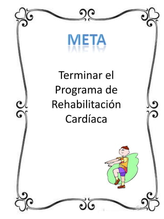 Este documento presenta varios temas relacionados con completar un programa de rehabilitación cardíaca de manera exitosa, incluyendo la disciplina, responsabilidad, respeto, puntualidad, paciencia, esfuerzo, amor al prójimo y compañerismo. Ofrece consejos sobre cómo superar los desafíos como la falta de motivación, los contratiempos y apoyar a los compañeros cuando enfrentan dificultades. El mensaje principal es que el compromiso, la perseverancia y el apoyo mutuo son claves para lograr los beneficios de salud