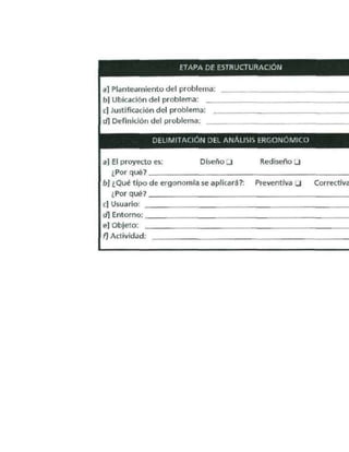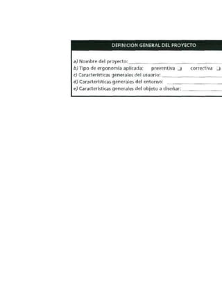 Este documento presenta una introducción a la ergonomía y su relación con el diseño industrial. Explica que la ergonomía estudia la interacción entre los objetos que usamos y el ser humano para mejorar esta relación. Describe que la ergonomía analiza cómo los sentidos humanos perciben y se relacionan con los entornos creados por el hombre, sean estos entornos laborales, de transporte o cualquier otro, con el fin de mejorar el bienestar de todas las personas. Finalmente, señala que debido a su enfoque en la interfaz