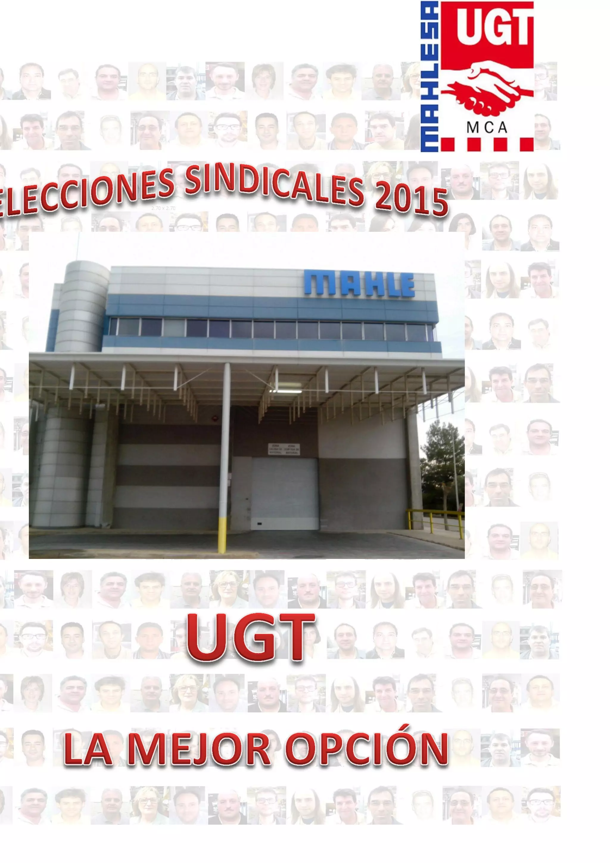 La sección sindical U.G.T.-MAHLE S.A. presenta su candidatura al Comité de Empresa para las próximas elecciones sindicales con el objetivo de recuperar las condiciones laborales perdidas y garantizar la estabilidad laboral. Proponen dar más protagonismo a los afiliados, mejorar la transparencia y fomentar el diálogo con la dirección para negociar incrementos salariales ligados a los resultados de la empresa y conseguir nuevos proyectos que generen empleo.