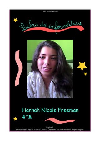 Este documento es un libro de informática que contiene varios capítulos sobre temas como gráficos, edición de texto, gráficos vectoriales, derechos de autor y publicación en internet. Explica cómo hacer capturas de pantalla, recortar y escalar imágenes, usar un procesador de texto, crear gráficos vectoriales, añadir índices, cabeceras y pies de página a documentos, y subir archivos a Google Drive.