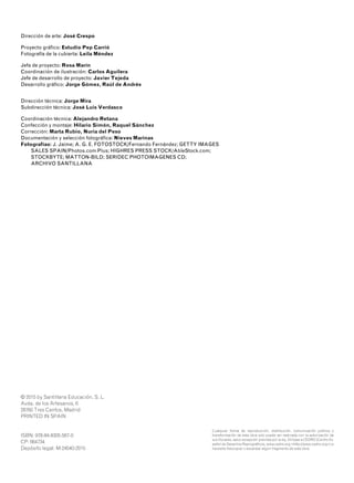 Este documento presenta una guía didáctica para la asignatura de matemáticas del cuarto curso de primaria. La guía fue creada por un equipo de Santillana Educación y contiene 15 unidades sobre diferentes temas matemáticos, así como ejercicios de cálculo mental, resolución de problemas y habilidades prácticas.