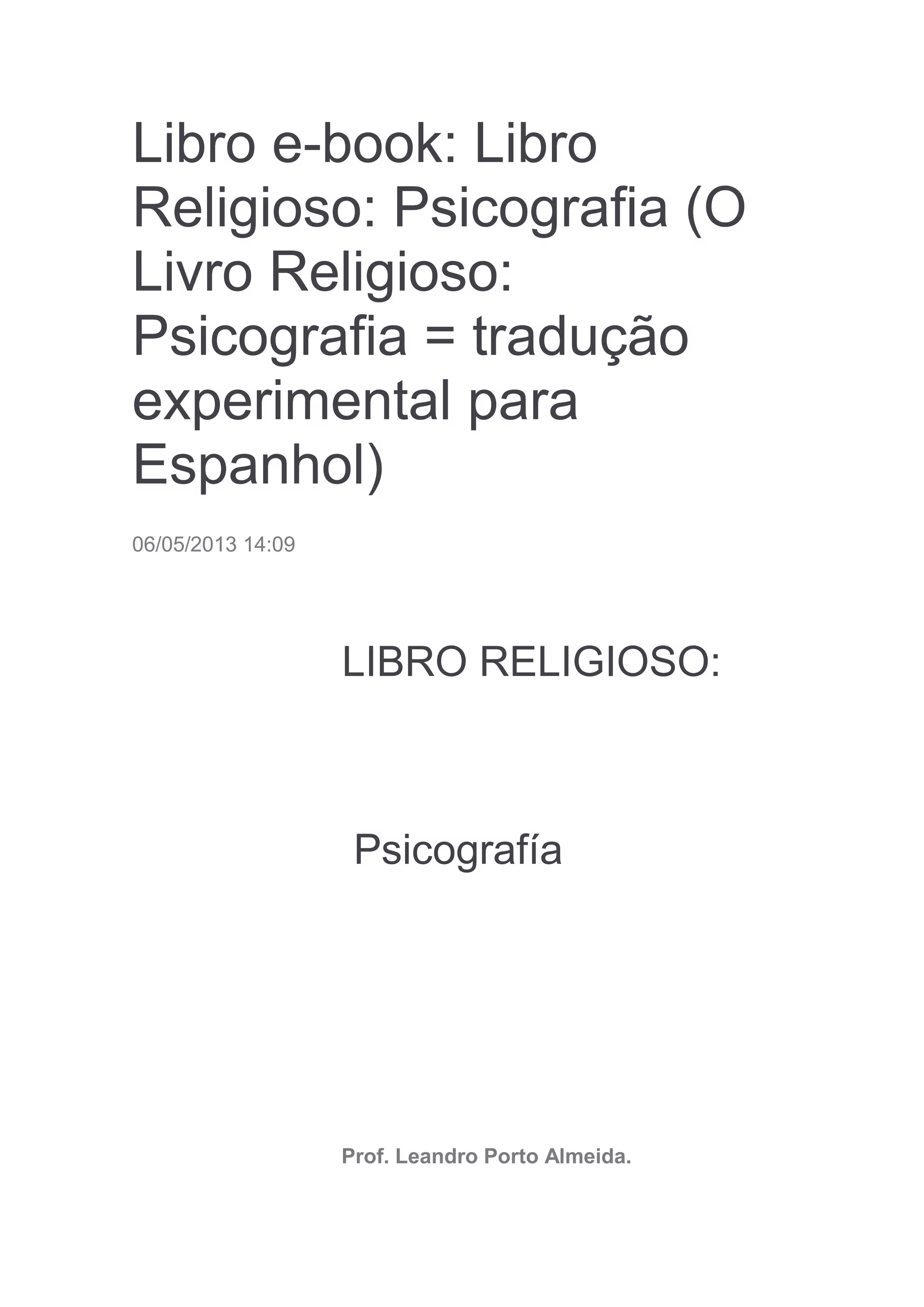 Este documento presenta un resumen de la Parte I de un libro religioso titulado "Psicografía". La Parte I contiene 7 cartas celestiales que abordan temas como la obra redentora de Dios, el fuego eterno, la fe redentora, el carácter restaurador de la resurrección, la lluvia para la vida, los remedios para Dios y el padre más cercano. Las cartas celestes fueron psicografiadas y presentan perspectivas sobre estos temas religiosos desde un punto de vista espiritual.