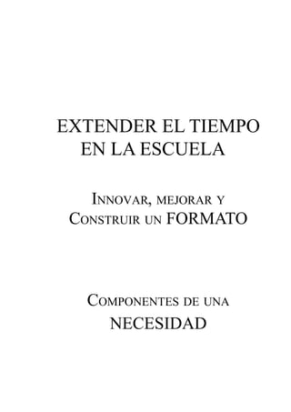 Este documento discute la importancia de extender el tiempo en la escuela para promover la equidad y la integración social. Propone que las escuelas de tiempo extendido ofrecen más oportunidades de aprendizaje a través de talleres, deportes, idiomas y tecnología. También ayudan a los estudiantes de entornos desfavorecidos al asegurar la transmisión de valores y conocimientos más allá del horario escolar regular.