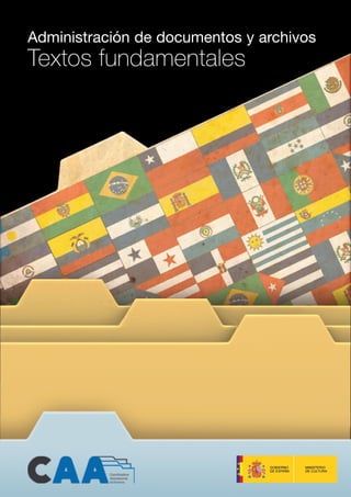 Este documento presenta un libro titulado "Administración de documentos y archivos. Textos fundamentales" publicado por la Coordinadora de Asociaciones de Archiveros de España. El libro contiene capítulos escritos por expertos de España y Latinoamérica sobre temas archivísticos como principios básicos, normativa, procesos, clasificación, descripción, selección y más. El prólogo fue escrito por el Dr. Aurelio Tanodi de Argentina.