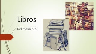 Este documento resume tres libros populares actuales: El Hogar de Miss Peregrine para Niños Peculiares de Ransom Riggs, una novela de ciencia ficción con dos secuelas publicadas por Quirck Books; Legados de Lorien, una saga de 11 libros escrita por James Frey dentro del género de ciencia ficción; y Maze Runner, una trilogía con tres secuelas adicionales escrita por James Dashner que combina los géneros de aventuras, ciencia ficción, ficción utópica y distópica