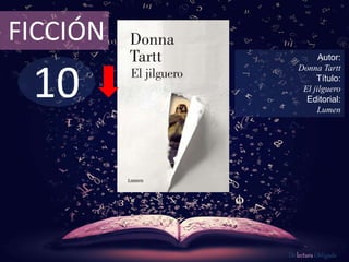 El documento presenta una lista de los libros más vendidos por categoría y formato durante la semana del 19 al 25 de junio de 2014, abarcando tanto ficción como no ficción y distintos formatos como ebooks. Incluye títulos destacados de autores populares, así como sus respectivas editoriales. Cada entrada está numerada y organizada por su rank de ventas, proporcionando un panorama del consumo literario en ese periodo.