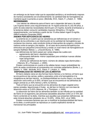 La deficiencia de hierro puede afectar el rendimiento deportivo al reducir la capacidad de transporte de oxígeno en la sangre. Las mujeres, vegetarianos estrictos y personas con pérdidas de sangre excesivas tienen mayor riesgo de deficiencia. Aunque la suplementación puede ser útil para corregir deficiencias, lo ideal es obtener hierro de fuentes alimenticias como carnes, pescados, espinacas y brócoli.