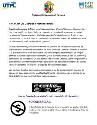 Creative Commons es una organización sin fines de lucro que permite compartir y usar la creatividad y el conocimiento a través de licencias gratuitas. Estas licencias ofrecen a los autores una forma sencilla de cambiar los términos de derechos de autor de sus obras de "todos los derechos reservados" a "algunos derechos reservados". La licencia Reconocimiento - SinComercial - SinDerivadas permite a otros descargar y compartir el trabajo siempre que se dé crédito y no se modifique o use con fines comerciales.