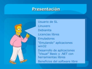 Este documento trata sobre las diferentes licencias de software, incluyendo licencias propietarias y licencias libres. Explica que una licencia es un contrato que otorga permisos de uso de bienes intelectuales. También describe varias licencias importantes como la GPL y la licencia BSD, y discute los beneficios y limitaciones del software libre versus el software propietario. Concluye que la selección adecuada de herramientas de software puede evitar problemas futuros.