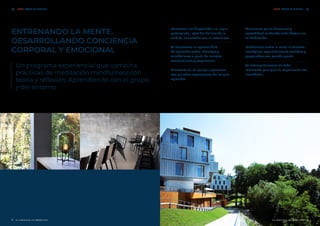 Este documento describe un programa de retiro para líderes que busca mejorar sus habilidades de liderazgo a través de prácticas de mindfulness. El programa se llevará a cabo en un hotel y consistirá en meditación, yoga, discusiones sobre liderazgo consciente y networking. El objetivo es que los líderes se conecten con su esencia, gestionen mejor el estrés y se transformen en líderes mindfuls.