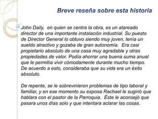 El documento discute conceptos de liderazgo como servir a los demás, desarrollar cualidades inherentes a la naturaleza humana como la paciencia y la humildad, y llegar a ser un líder inconscientemente experto a través de la experiencia. Seis participantes en un retiro reconocieron que, a pesar de sus diferentes perspectivas, lograron consenso gracias a la intervención de un líder experimentado como el Profesor Simeón.