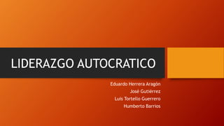El liderazgo autocrático se caracteriza por el control absoluto de una sola persona sobre un grupo, tomando decisiones sin considerar las opiniones de los demás. Este tipo de liderazgo tiene ventajas como la eficiencia y el control de calidad, pero también presenta desventajas significativas, como la frustración entre subordinados y la falta de colaboración. La figura del líder autocrático es generalmente segura y responsable, pero tiende a limitar la comunicación y el crecimiento del equipo.