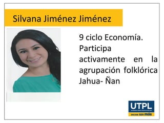 El documento presenta a un grupo de mujeres emprendedoras, destacando a Keyla Yela, María Soledad, Carmen Valdez y Julio Ordoñez Silvana Jiménez, quienes participan activamente en la agrupación folklórica Jahua-Nan. Logran varios hitos como ser abanderadas del pabellón nacional y obtener una beca del 90% en estudios universitarios. Además, están comprometidas con su desarrollo académico y artístico, trabajando en su tesis sobre 'capital humano, sectores económicos e igualdad económica en Ecuador'.