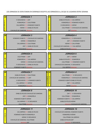 El Cali-Birras Futbol Club lidera la liga con 24 puntos tras 10 partidos jugados, seguido por el ZAP con 21 puntos. El torneo consta de 18 jornadas donde participan 9 equipos y se juega todos los domingos excepto las jornadas 8 y 18 que son entre semana.