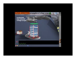 El documento trata sobre sobretensiones transitorias y los requisitos de protección contra ellas. Explica que las sobretensiones pueden ser causadas por descargas atmosféricas o fallas en la red eléctrica y pueden ocurrir en microsegundos. También describe los riesgos asociados y los requisitos técnicos de la norma para instalar dispositivos de protección contra sobretensiones.