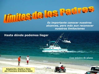 El documento resume los límites de los padres en la educación de sus hijos. Aunque los padres pueden enseñar valores y dar consejos, los hijos son responsables de sus propias decisiones y acciones. Los padres pueden amar y guiar a sus hijos, pero no pueden vivir sus vidas por ellos ni garantizar su éxito.