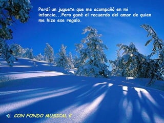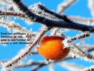 El documento habla sobre cómo aunque se pierden cosas en la vida como juguetes de la infancia, privilegios de niño, y personas queridas, también se ganan cosas como recuerdos, la oportunidad de crecer libremente, y el ejemplo y cariño de esas personas. Además, aunque se pierdan momentos únicos llorando, se descubre que sembrando amor se cosecha amor. El documento alienta a las personas a recomenzar, soñar en grande, limpiar su mente del pasado dañino, y confiar
