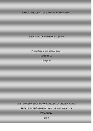 Este documento presenta un manual de identidad visual corporativa. Explica la importancia de tener una marca para las empresas y define el manual como un documento normativo que guía el uso de la identidad visual de una organización. Detalla las secciones clave que debe contener un manual básico, como la explicación del logotipo, sus colores, tipografías, versiones permitidas y aplicaciones.