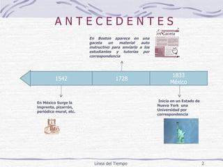 Este documento presenta una línea de tiempo que resume la evolución de las tecnologías de la información y la comunicación aplicadas a la instrucción, desde sus inicios en el siglo XIX hasta la actualidad. Se destacan hitos como el desarrollo de la imprenta, la radio, la televisión, las computadoras personales y el internet. Asimismo, se mencionan proyectos educativos pioneros en el uso de estas tecnologías para mejorar la enseñanza.