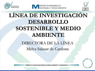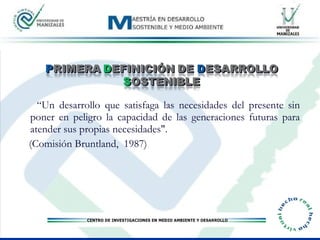 El documento trata sobre el desarrollo sostenible y su evolución en Colombia. Define el desarrollo sostenible como aquel que permite el crecimiento económico y la mejora de la calidad de vida sin agotar los recursos naturales. Explica que el desarrollo sostenible debe considerar factores económicos, sociales, culturales, ambientales e institucionales para lograr el bienestar de las generaciones actuales y futuras. Finalmente, menciona algunos temas de investigación relacionados como el manejo de cuencas hidrogr