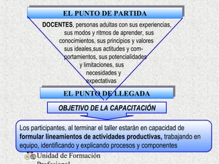 El documento describe los lineamientos para el desarrollo de actividades productivas en los Centros de Educación Técnico Productiva (CETPRO) en Perú. Explica que las actividades productivas forman parte del proceso de enseñanza-aprendizaje y ayudan a desarrollar competencias laborales en los estudiantes. También proveen una fuente de financiamiento para los CETPRO. Se detallan los pasos para implementar proyectos productivos educativos, incluyendo análisis, planificación, ejecución y evaluación. El objet