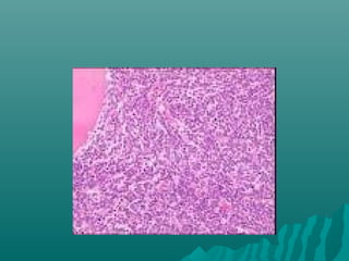Los linfomas son tumores malignos que se originan en el tejido linfático. Existen dos tipos principales: el linfoma de Hodgkin y el linfoma no Hodgkin. El linfoma no Hodgkin incluye más de 30 subtipos diferentes y su incidencia ha ido en aumento. Dentro de los linfomas no Hodgkin se encuentran el linfoma linfoblástico, que afecta principalmente a niños y jóvenes, y el linfoma de Burkitt, un tipo agresivo asociado con el virus de Epstein-Barr.