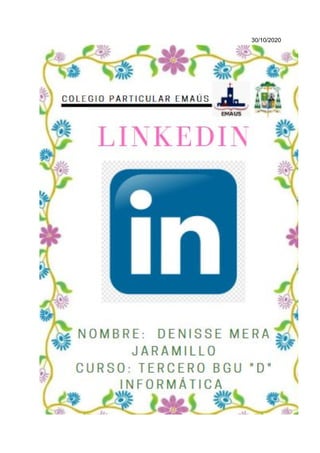 LinkedIn es una red social para negocios que permite a usuarios crear perfiles profesionales para mejorar su marca personal, conseguir contactos, atraer tráfico y hacer networking. Los usuarios pueden acceder a oportunidades de empleo, contactar líderes de su industria, compartir información en grupos y mantener su currículum en línea. Si bien ofrece ventajas como generar networking, también plantea riesgos como la difusión de datos personales y posibles difamaciones.