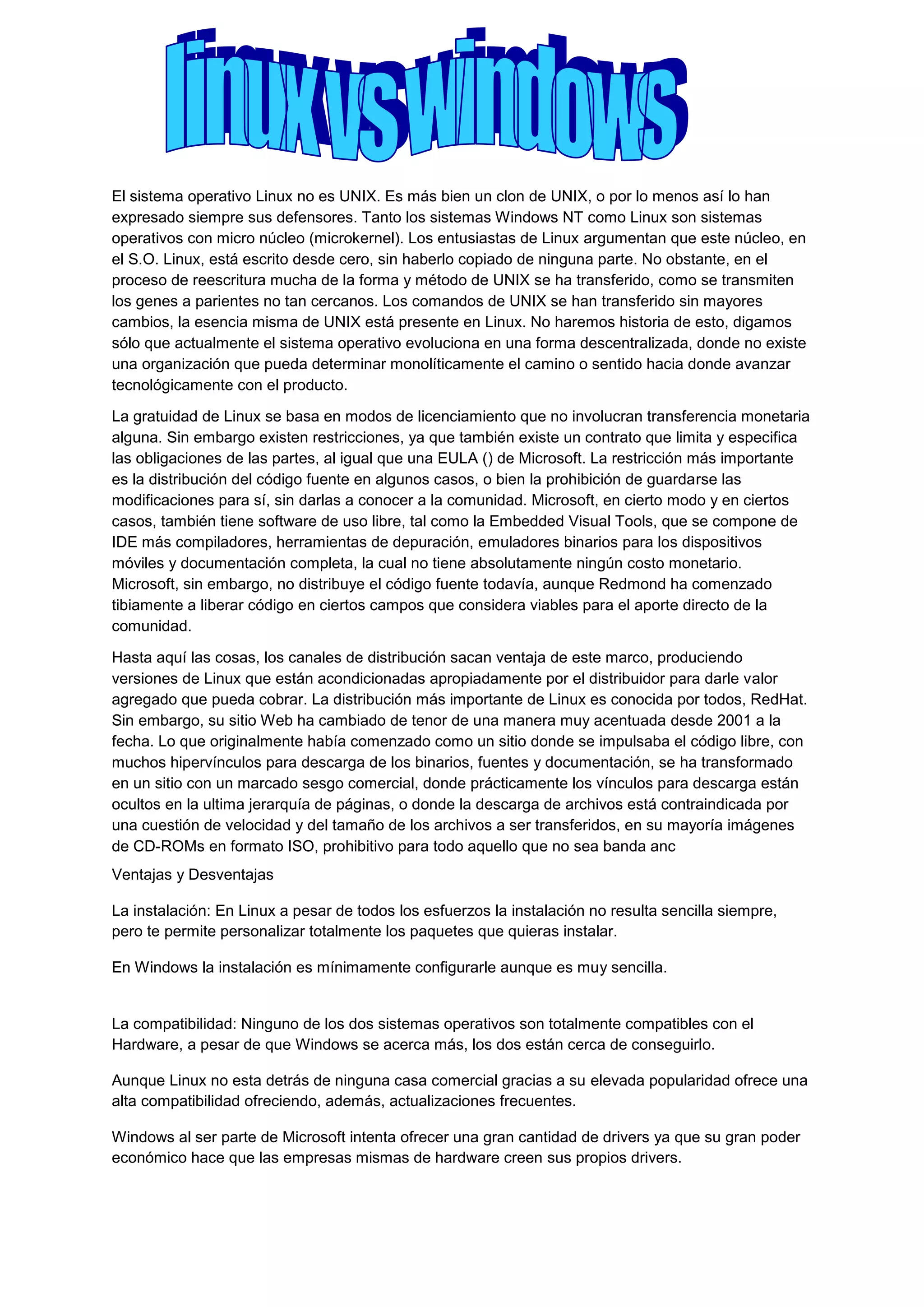 Linux no es técnicamente UNIX, pero se basa en él y comparte muchas de sus características fundamentales. Al igual que Windows, Linux es un sistema operativo de microkernel que evoluciona de forma descentralizada sin una organización que determine su dirección. Aunque Linux es gratuito, tiene restricciones de licencia como la obligación de compartir modificaciones. Distribuidores como Red Hat agregan valor a versiones de Linux para cobrar por ellas.