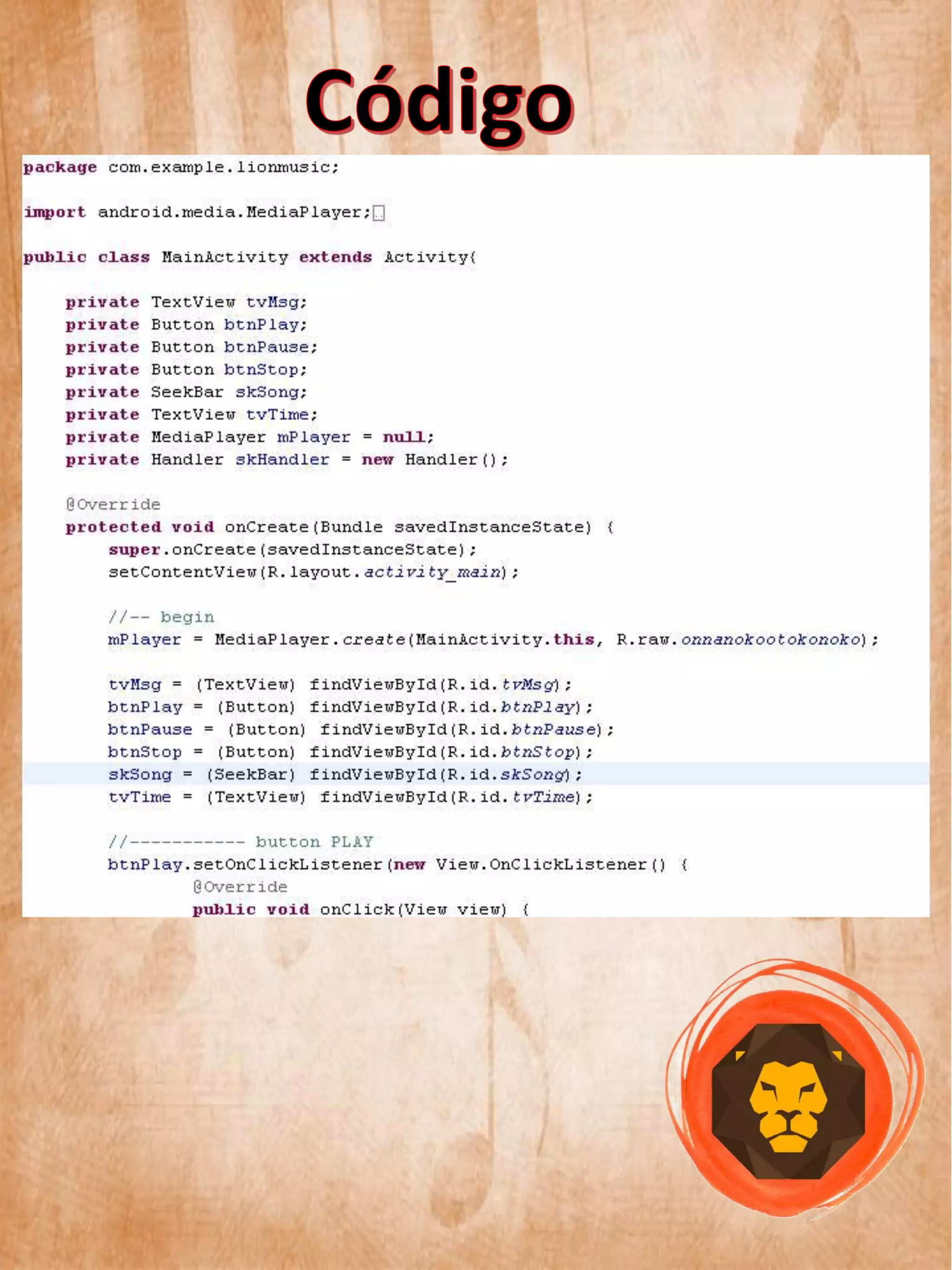 Este documento describe un proyecto de desarrollo de una aplicación móvil llamada LionMusic que reproduce música relajante. Un grupo de estudiantes creó la aplicación usando Java y Eclipse para proporcionar a los usuarios 3 horas de música relajante que pueden reproducir en cualquier momento sin necesidad de conexión a Internet. Realizaron una encuesta que mostró que la mayoría de las personas necesitan música relajante y encontrarían útil una aplicación como esta.