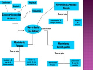 El documento describe los conceptos fundamentales del movimiento oscilatorio, incluyendo amplitud, periodo, frecuencia, movimiento armónico simple, movimiento forzado y amortiguado. Explica el movimiento del péndulo simple como un ejemplo de movimiento armónico, describiendo las fuerzas y ecuaciones que rigen su oscilación. También provee ejemplos de aplicaciones del movimiento oscilatorio en ingeniería civil.