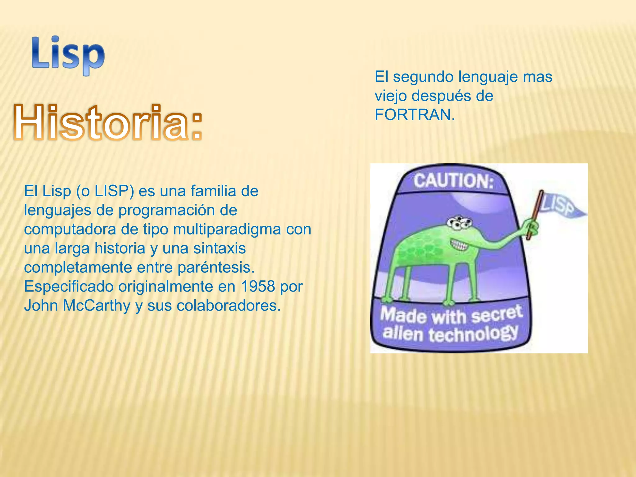 LISP es un lenguaje de programación multiparadigma diseñado originalmente en 1958 por John McCarthy para la manipulación de listas y fórmulas simbólicas. Más adelante, LISP encontró aplicación en el campo de la inteligencia artificial. LISP tiene una sintaxis completamente entre paréntesis y maneja la memoria de forma automática.