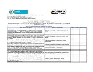 Este documento presenta una lista de chequeo para evaluar el Programa de Auditoría para el Mejoramiento Continuo de la Calidad (PAMEC) en instituciones prestadoras de servicios de salud. La lista de chequeo contiene 9 secciones que abarcan diferentes aspectos del PAMEC como el alcance, selección de procesos, definición de metas de calidad, implementación de planes de mejora, y aprendizaje organizacional. El objetivo es que las instituciones utilicen esta herramienta para evaluar el diseño e implementación de su PAMEC