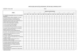 DOCENTE EVALUADO: …………………………………………………………………………………………………………….. AREA ……………………………………………………………………………………………………….