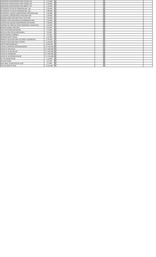 Este documento presenta una lista de productos de diferentes categorías como cuidado personal, nutrición, limpieza y cocina junto con sus respectivos precios. En total se enumeran más de 200 productos de marcas como Herbalife, MoisKin, Artistry, Glister, entre otras.