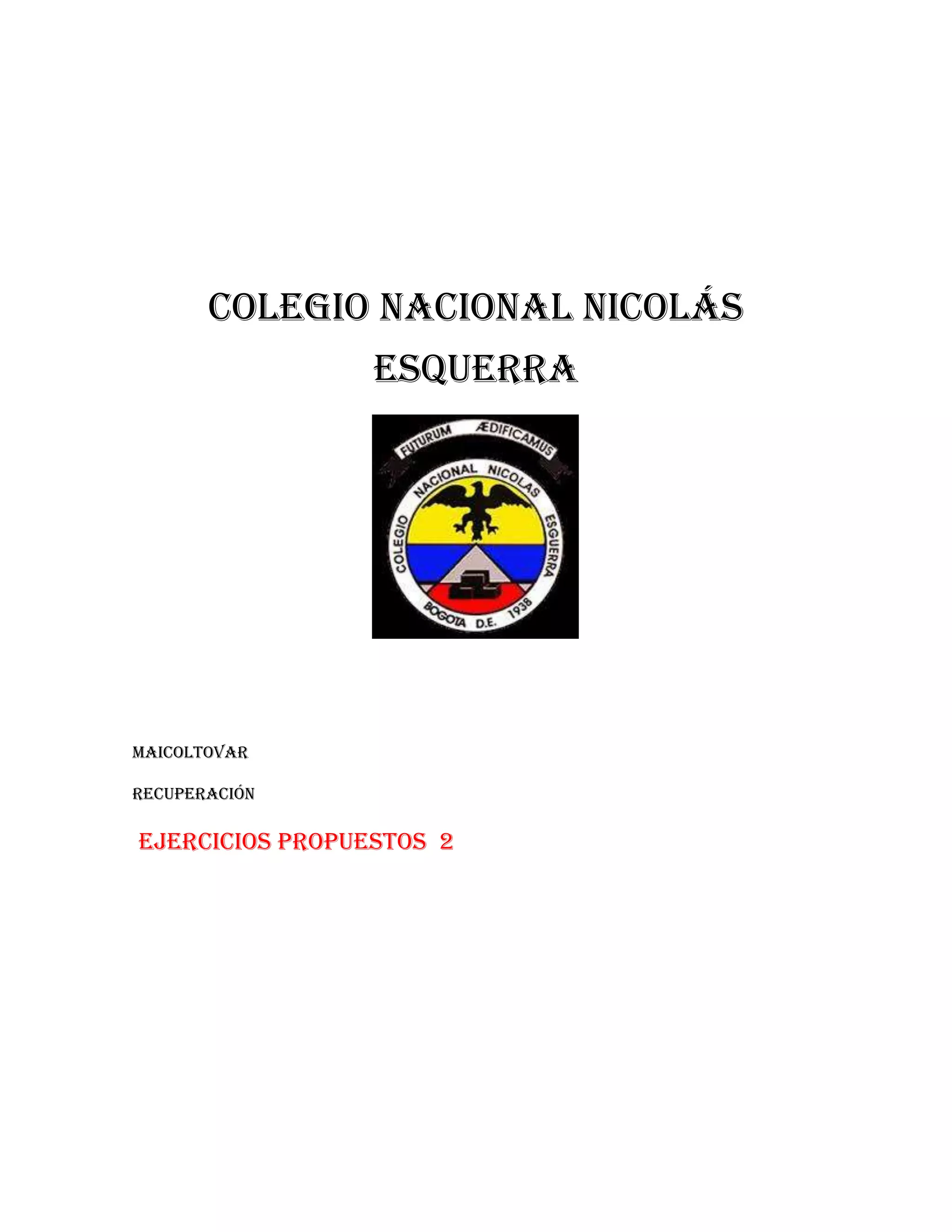 Este documento describe brevemente las actividades de un estudiante para recuperar un tema en el colegio nacional Nicolás Esquerra. El estudiante abrió un bloc de notas, colocó el código correspondiente al tema, y completó el código para ver el resultado.