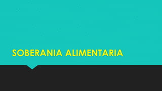 La soberanía alimentaria es el derecho de los pueblos a definir sus propias políticas agrarias y alimentarias para garantizar el acceso a alimentos nutritivos y culturalmente adecuados de forma sostenible. Surge como principio en 1996 para promover el comercio justo y los derechos de los consumidores. México depende cada vez más de importaciones de alimentos básicos debido a problemas como el cambio climático, lo que amenaza su soberanía alimentaria.