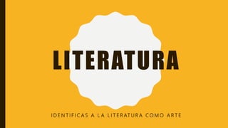 Este documento define la literatura como un arte, una creación artística a través de la cual el escritor interpreta la vida desde su perspectiva individual sin hacer una copia exacta de la realidad. Explica que la literatura se divide en tres grandes géneros - novela, cuento y poesía - y utiliza recursos como el lenguaje figurado y las figuras literarias para lograr un efecto estético y emocional en el lector. Además, analiza las características del lenguaje literario y las formas en que se puede presentar