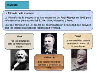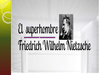 El documento resume la vida y obra del filósofo Friedrich Nietzsche. Se divide en tres etapas: la etapa romántica donde se hace amigo de Wagner, la etapa ilustrada donde escribe obras como Así habló Zaratustra, y la etapa profética donde publica obras críticas. Nietzsche propone la muerte de Dios y la aparición del Übermensch. Defiende la voluntad de poder y el eterno retorno, rechazando la moral tradicional.